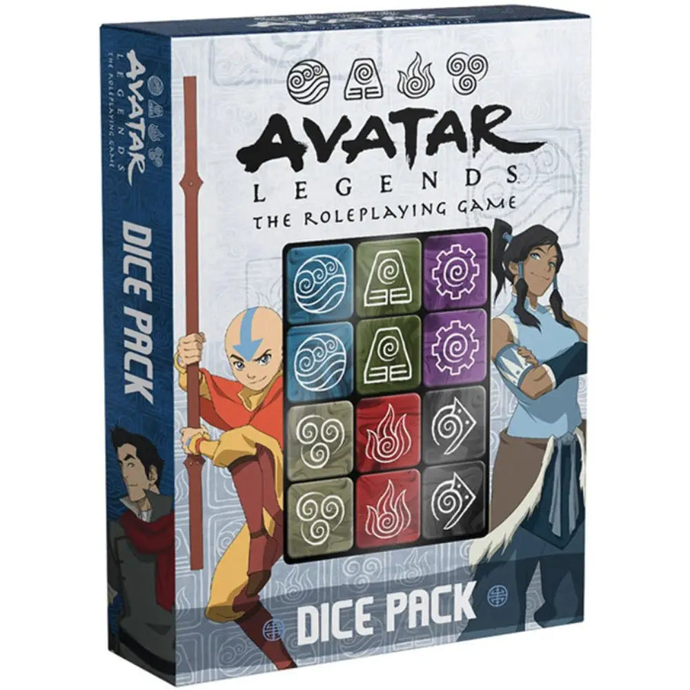 This pack of engraved dice contains six pairs of six-sided dice usable in Avatar Legends: The Roleplaying Game. Each pair bears the color and symbol of one of the six different trainings of heroes in this world: