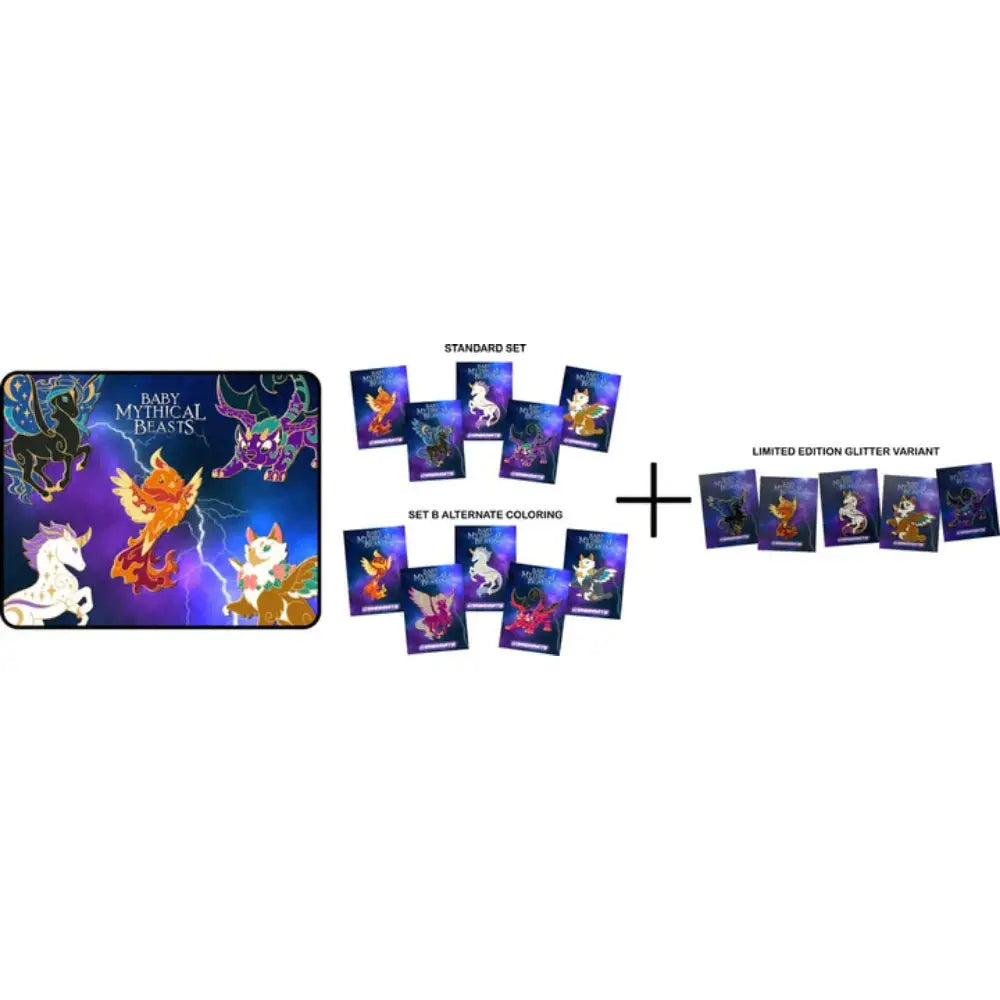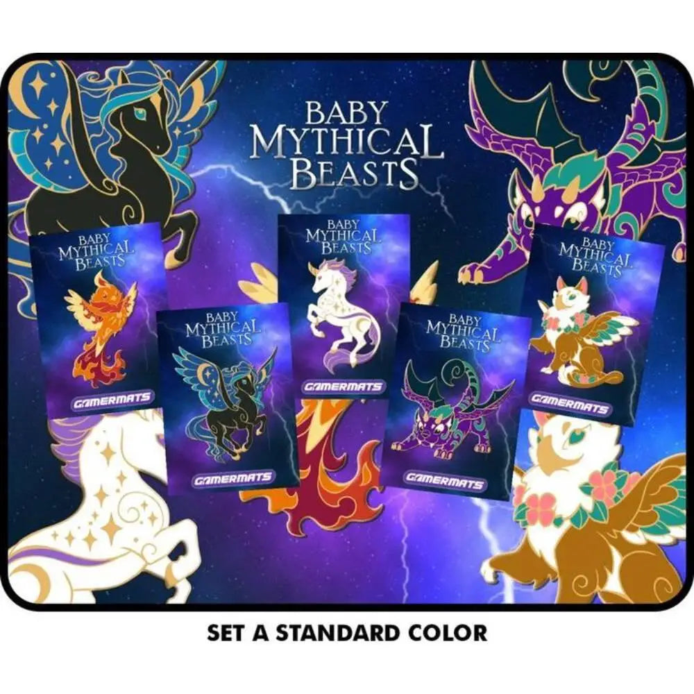 GamerMats PINS are premium, large, hard enamel and metal pins featuring great art and fantastic colors. This pin set contains 15 pins in total (Set A - Standard Colors, Set B - Alternate Colors, and Set LE - Glitter Versions. This set also includes a beautiful 8" x 10" black stitched pin mat!