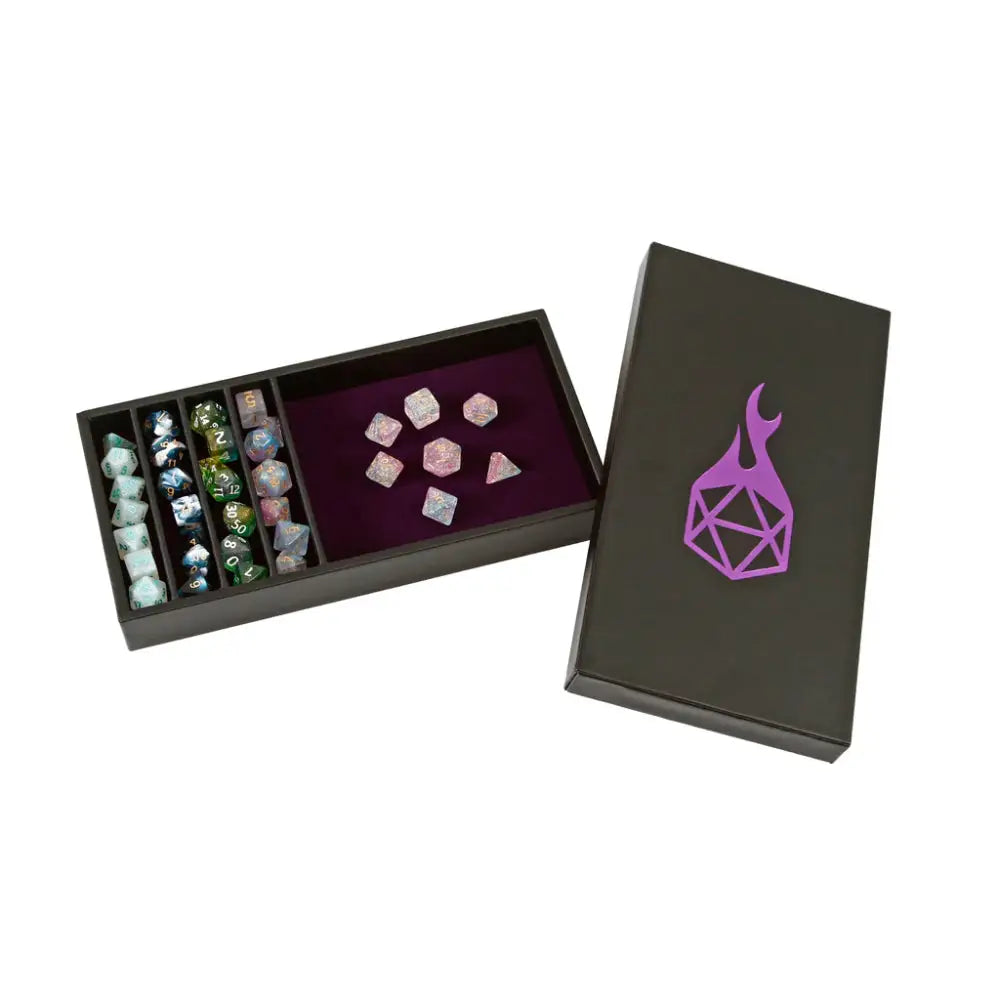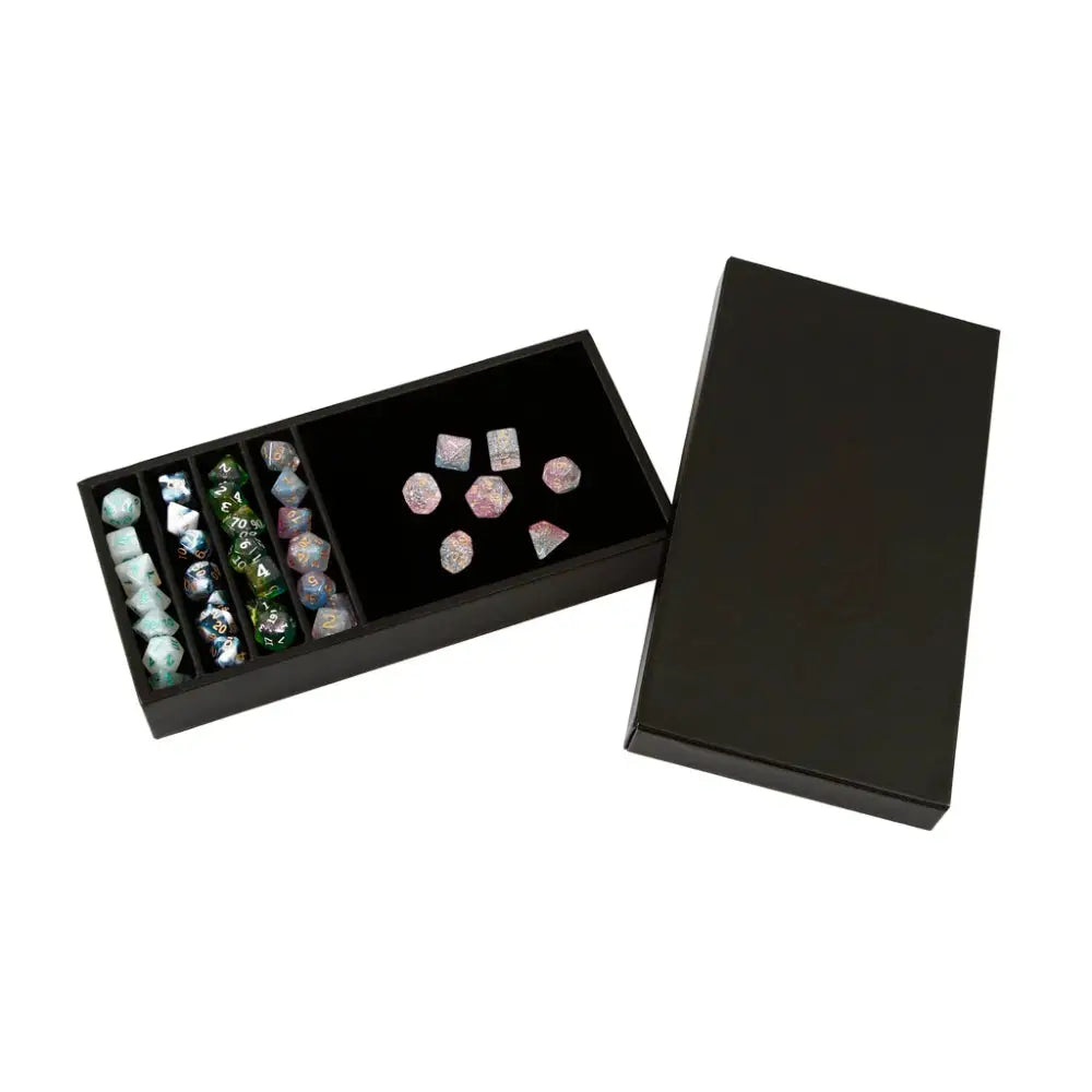 Upper deck 4 row dice showcase is 0.75 inches deep designed to hold a standard set of 7 per row - displays your prized polyhedrals while making them easily accessible for quick saves, critical hit rolls, and initiative victories