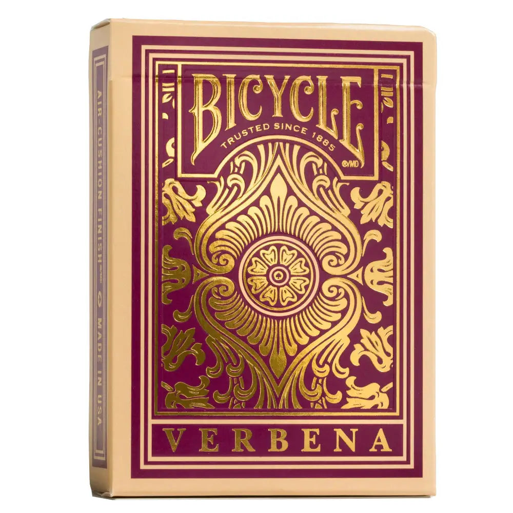 Bicycle Verbena is inspired by the wildflower, featuring a design with intricate lines of the stems and blossoms, often seen in shades of deep purple. The golden foil on the tuck represents the warmth of the sun. The tuck design is reminiscent of the divine and supernatural forces often associated with its namesake.