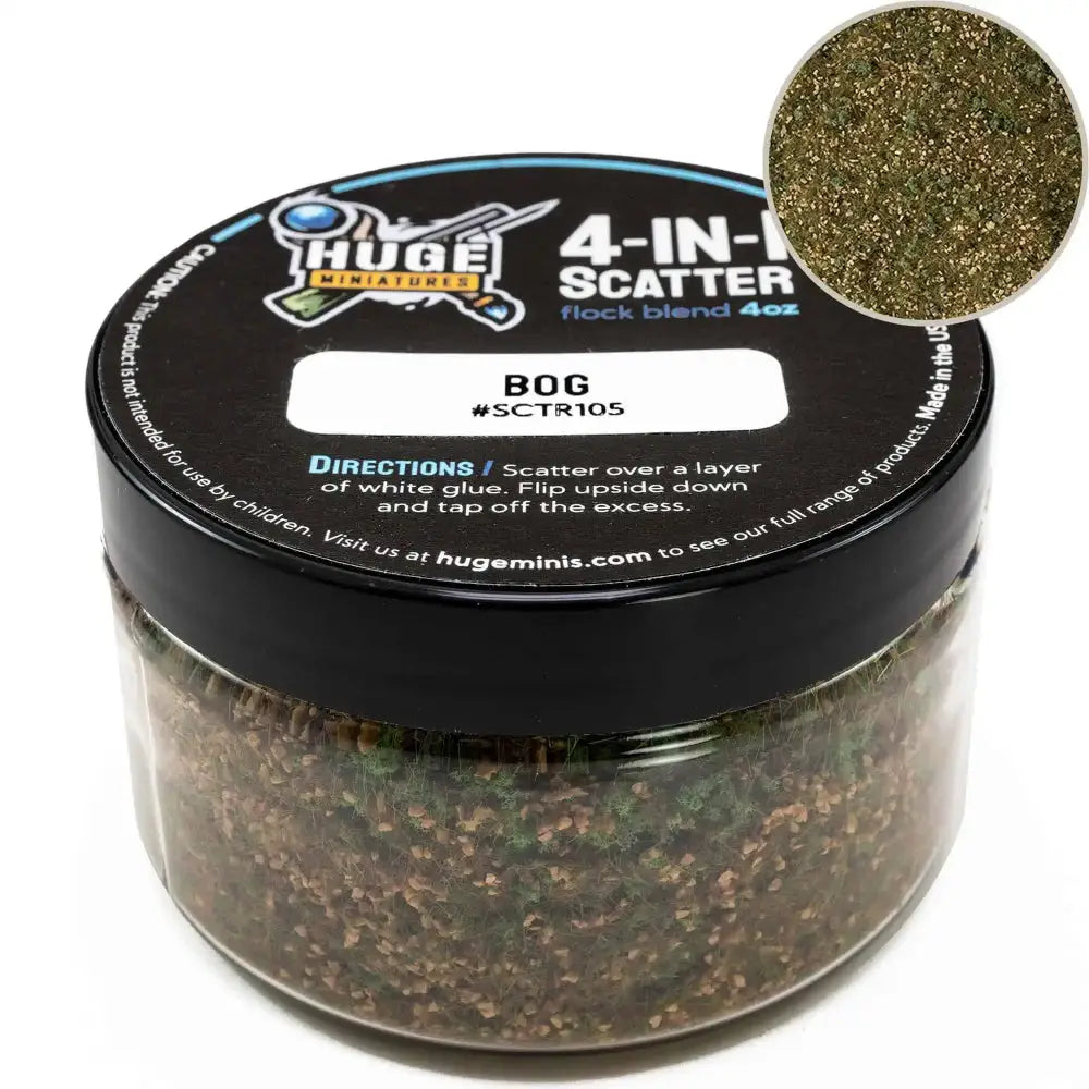 4-in-1 Bog Scatter is a mixture of our realistic static grass blends, loose foliage, and basing materials. This hand curated basing or terrain scatter makes for an easy and affordable instant landscape. Simply apply over a layer of undiluted pva glue, then tap off excess. For a more natural looking result, apply sparingly over top a layer of texture paste.