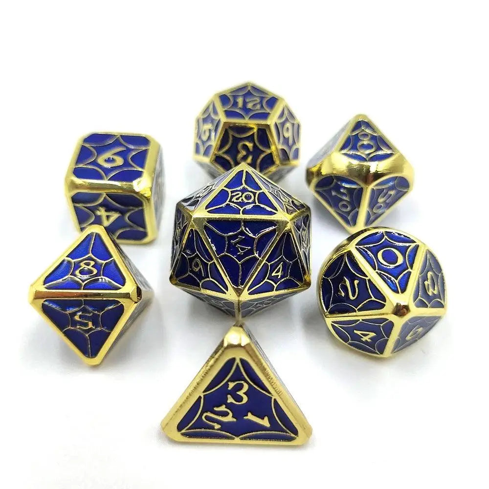 7-piece set of polyhedral dice, commonly used for RPGs such as Dungeons & Dragons, Pathfinder, and Savage Worlds. Includes 1 each of: d4, d6, d8, d10, d00, d12, and d20 plus black metal storage case.