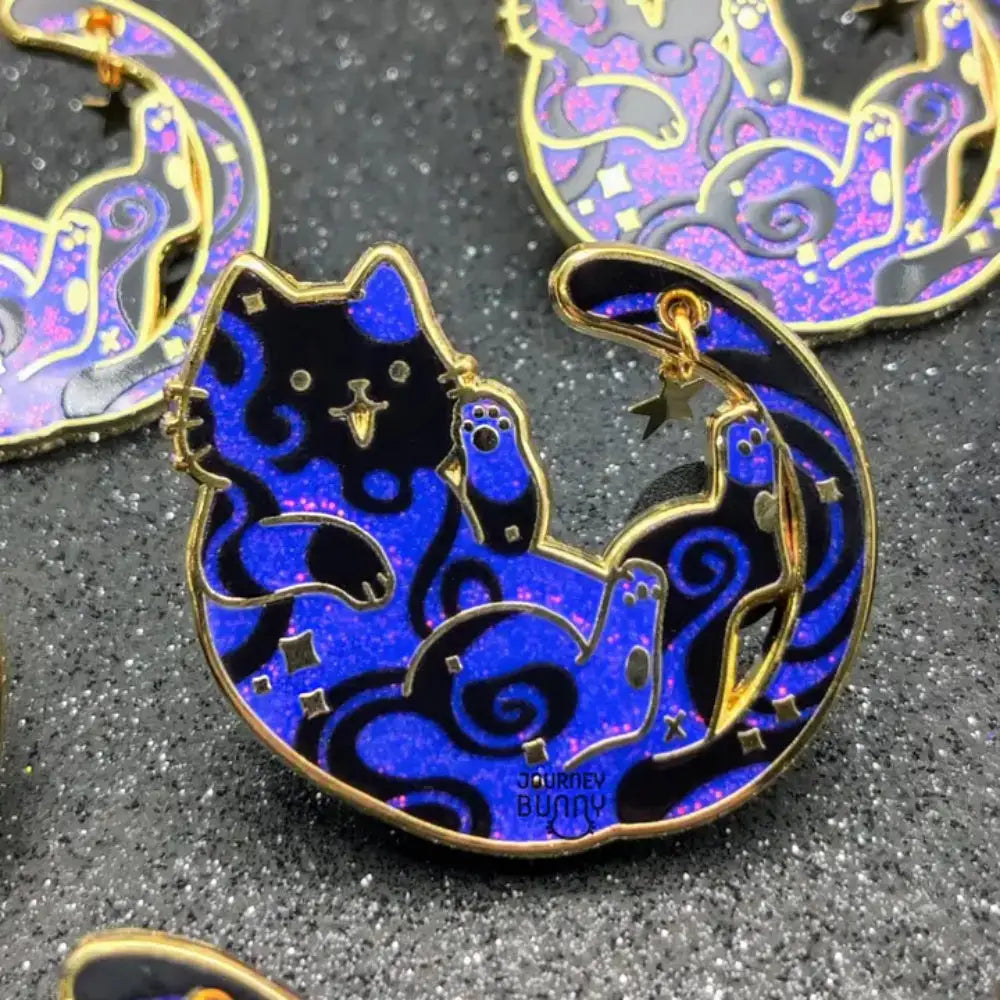 -1.75" inch on longest side -Glitter -Dangling Star Charm -Hard Enamel -Gold Plated -2 Pin Posts on back