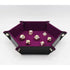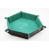 This beautiful dice tray is made with Leather & Velvet with Strong metal snap buttons to make it collapsible. Perfect for the traveling Dungeon Master. Keep the Tray flat and then snap together when ready to play.