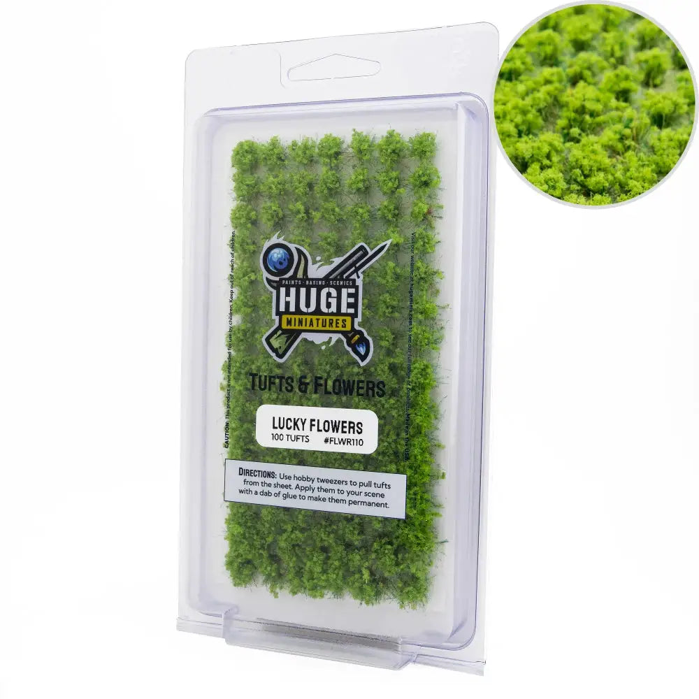 Each flower is approximately 3.5mm wide at the base, and widens near the top of the flower tuft. Each pack contains 105 flowers and comes in a resealable hard plastic container. These self adhesive tufts are simple to apply. A small dab of glue can provide extra staying power.