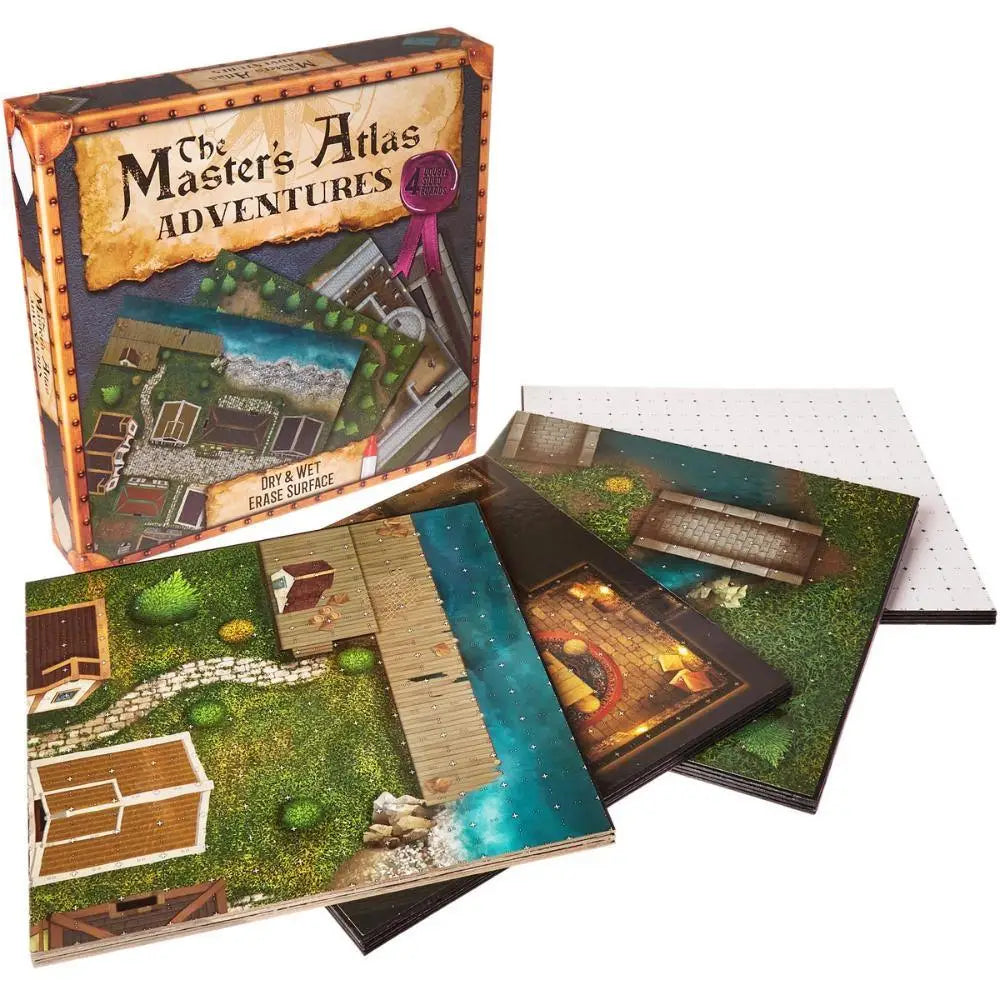Starting a new RPG campaign can be tricky. Creating an interesting hub village, populating it with vivid characters, not to mention quest hooks and plot threads! And what happens after? Take out the guesswork with Master's Atlas: Adventures. A complete set of fully illustrated, double-faced boards include vivid maps and battle-grids of six locales.