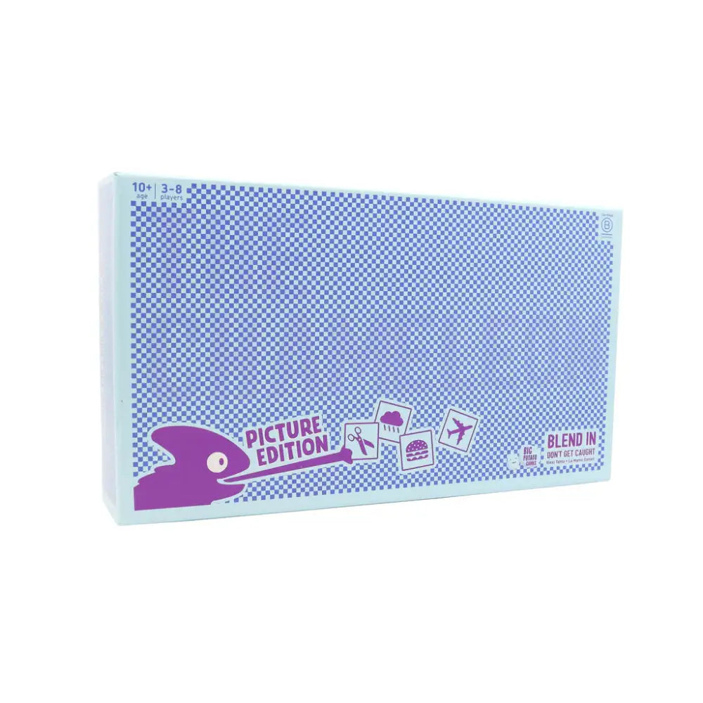 Look at the picture, use one word to describe it, then find the Chameleon. Board games for families should all be this easy and fun!