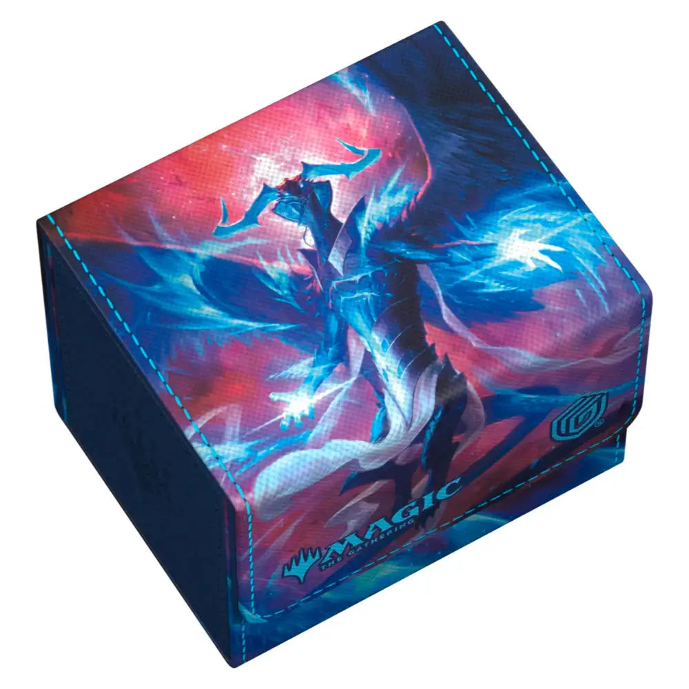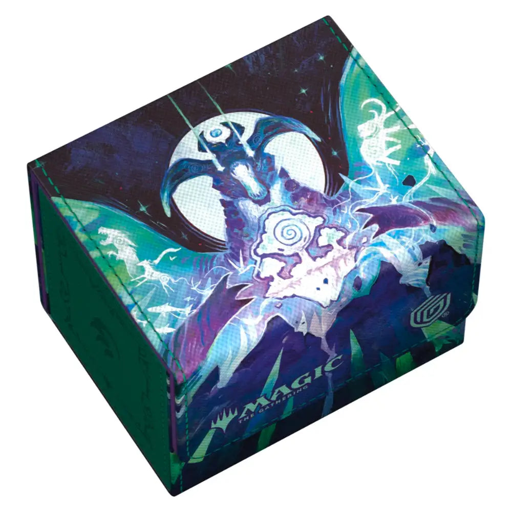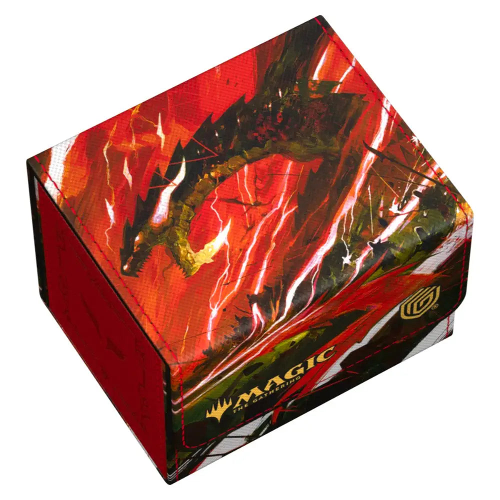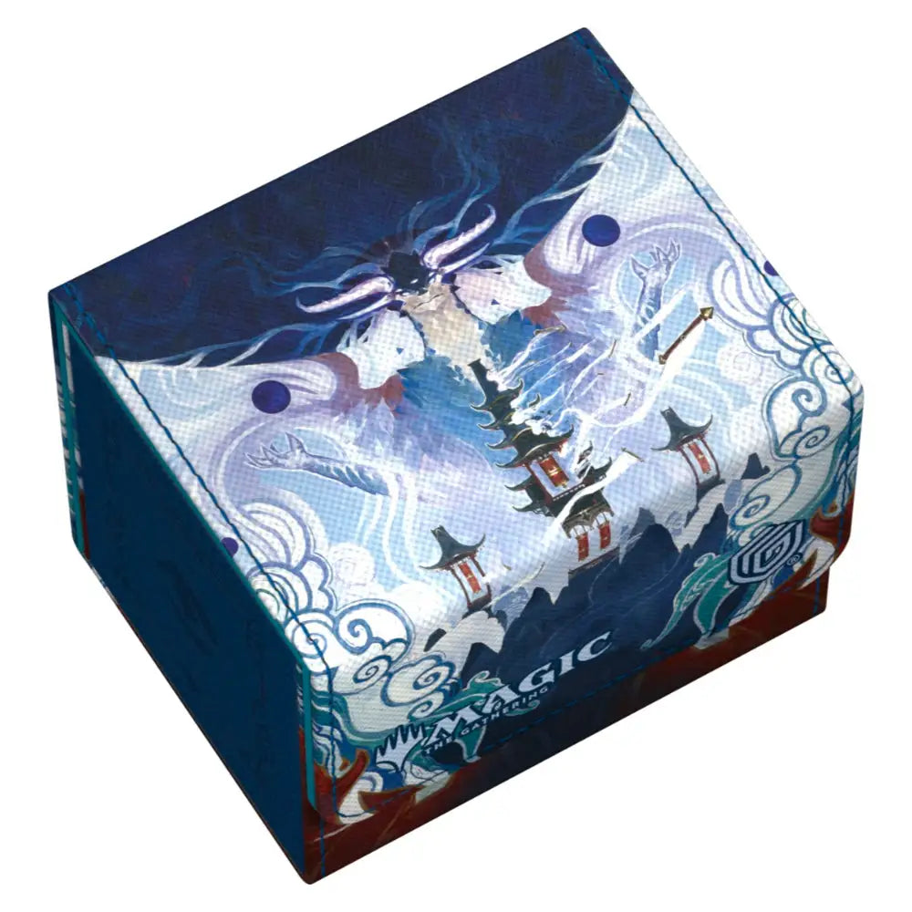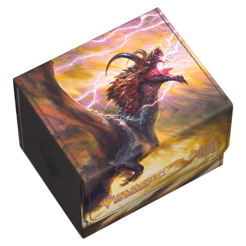 The Sidewinder 100+ made from durable Xenoskin material holds up to 100 double-sleeved or 120 single-sleeved cards, which are kept secure in the deck box thanks to a strong magnetic closure and soft microfiber interior. The sturdy, high-quality Xenoskin surface of the Sidewinder is printed in full color with officially licensed artwork from Magic: The Gathering’s Tarkir: Dragonstorm set.