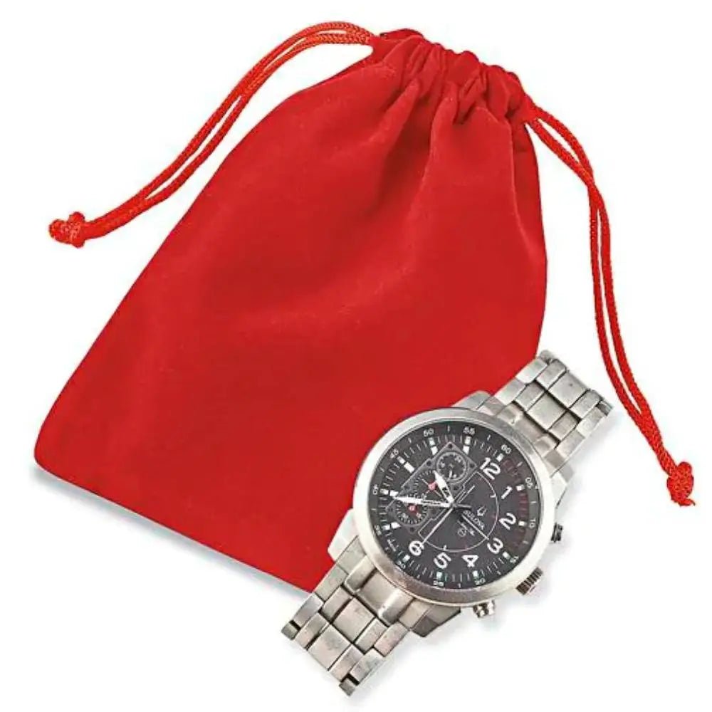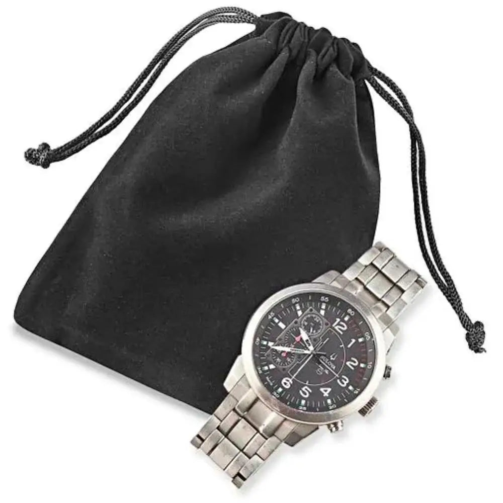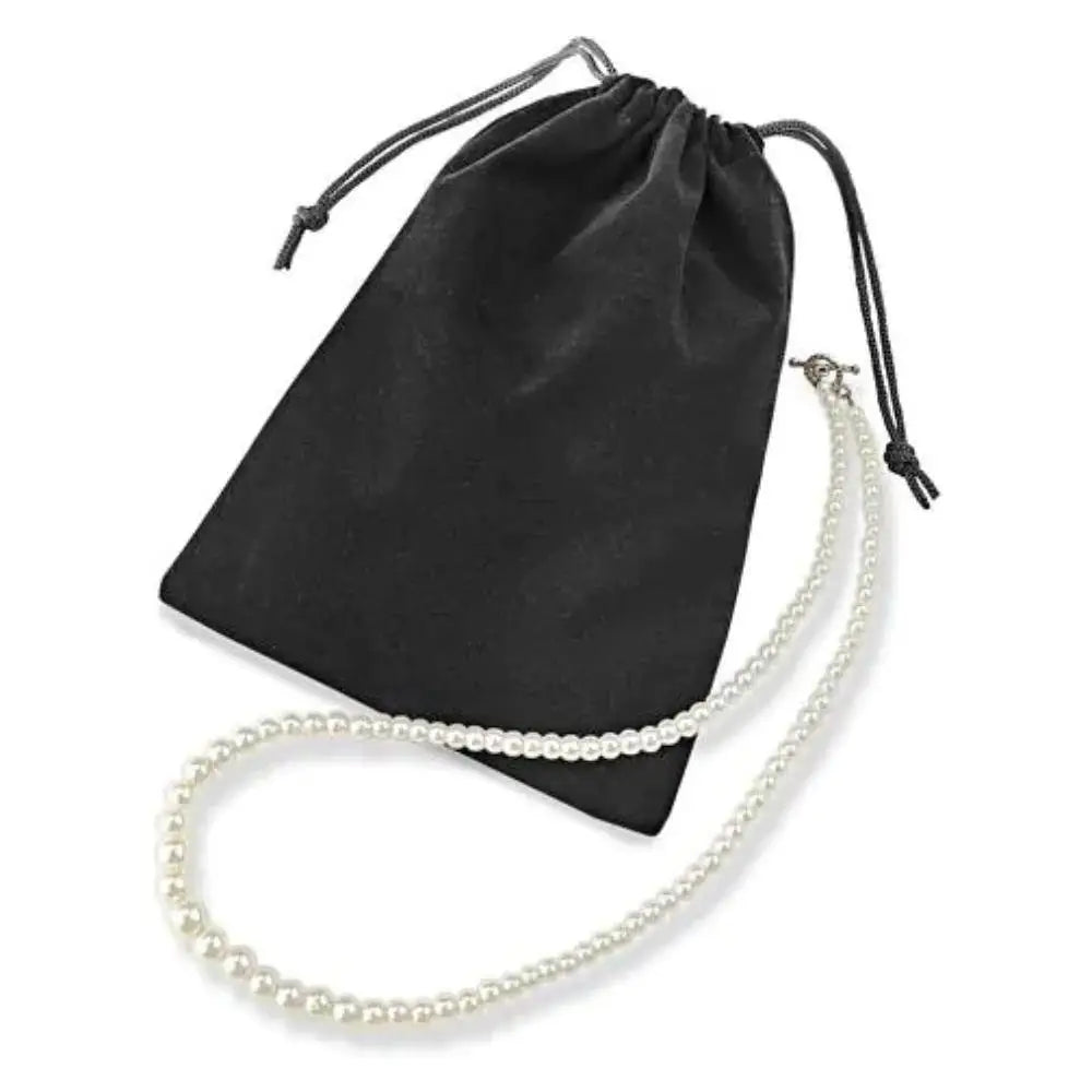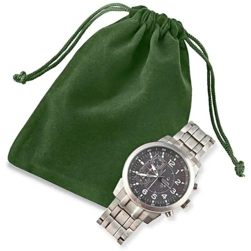 Double cord drawstring pulls velour bag tight for a snug, sure closure. Unlined, non-scratching interior. Dimensions are measured when velour bag is lying flat.