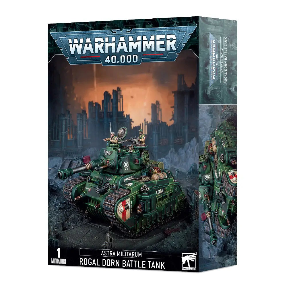 The Rogal Dorn Battle Tank is a lumbering behemoth, equally suited to anchoring a battle line, or grinding forward in support of an assault. Bristling with thunderous guns, these hulking armoured fighting vehicles pound breaches in enemy’s defences with enormous shells, and tear apart infantry with raucous storms of fire.