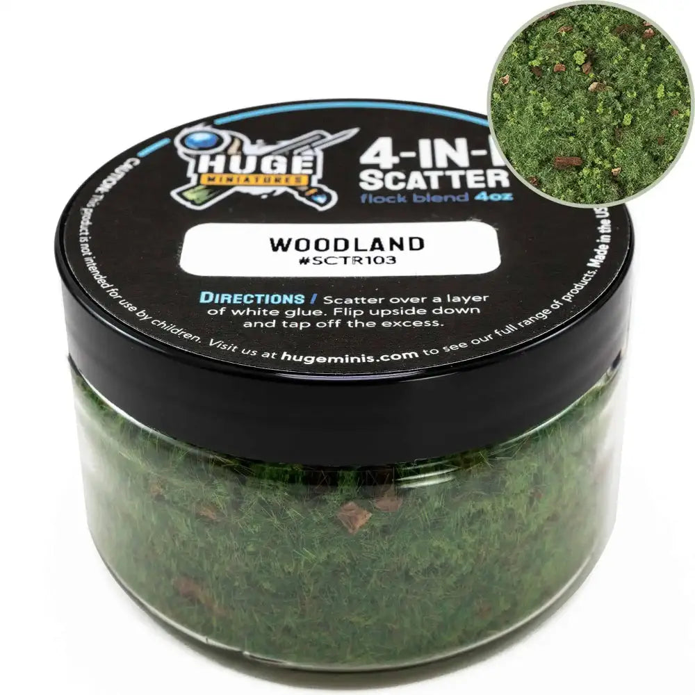 4-in-1 Woodland Scatter is a mixture of our realistic static grass blends, loose foliage, and basing materials. This hand curated basing or terrain scatter makes for an easy and affordable instant landscape. Simply apply over a layer of undiluted pva glue, then tap off excess. For a more natural looking result, apply sparingly over top a layer of texture paste.