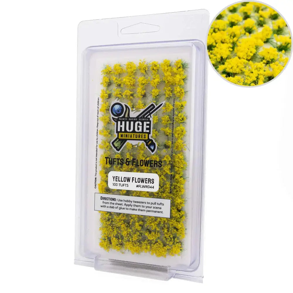 Each flower is approximately 3.5mm wide at the base, and widens near the top of the flower tuft. Each pack contains 105 flowers and comes in a resealable hard plastic container. These self adhesive tufts are simple to apply. A small dab of glue can provide extra staying power.